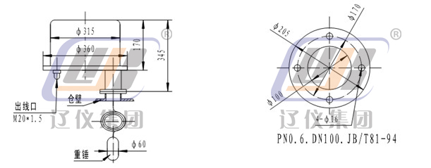 UL-3型物位開關(guān)采用擺復(fù)式傳動系統(tǒng)。擺動軸的軸端對稱掛有重錘及配重砣。無物料時,重錘失重,彈簧拉力克服了配重砣的重力使軸靜止,電機使測量撥叉張開動作,微動開關(guān)動作,發(fā)出料面信號;若物料夾住重錘下行,亦可使拔叉張開動作,發(fā)出料面信號,同時限位座靠在底板上,限制重錘繼續(xù)下行,使儀表內(nèi)部免受沖擊及拉力,切斷電機電源。