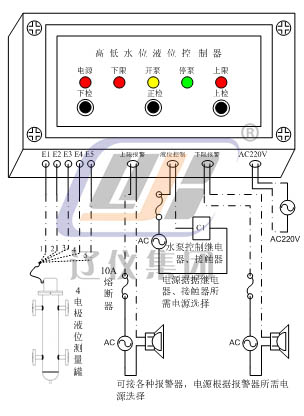 UDK-G3R-A1型水位控制器主要應(yīng)用于工業(yè)蒸汽鍋爐、熱水鍋爐、污水處理、浴池及樓房給排水等。具有應(yīng)用范圍廣、自控靈敏、抗干擾性強、體積小、價格低廉等特點。該控制器由水位檢測部分(電極、極筒)和水位控制部分組成,水位控制器是將導(dǎo)電介質(zhì)的液位信號轉(zhuǎn)換為四組開關(guān)信號,上下限報警,LED顯示及開關(guān)輸出。