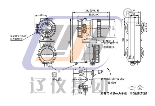 2)接地方式為接地電極(標(biāo)準(zhǔn)配置)時,DN125-1000口徑,尺寸L不變。
